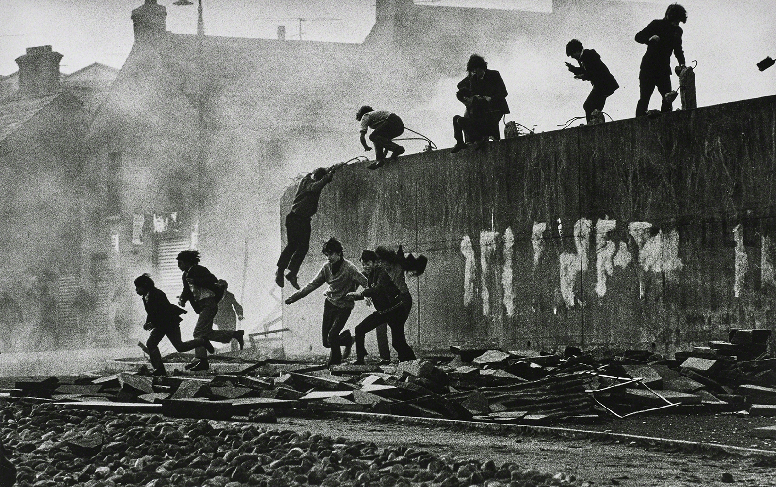 Image: Don McCullin, Gangs of Boys Escaping C.S. Gas Fired by British Soldiers, Londonderry, Northern Ireland, 1971