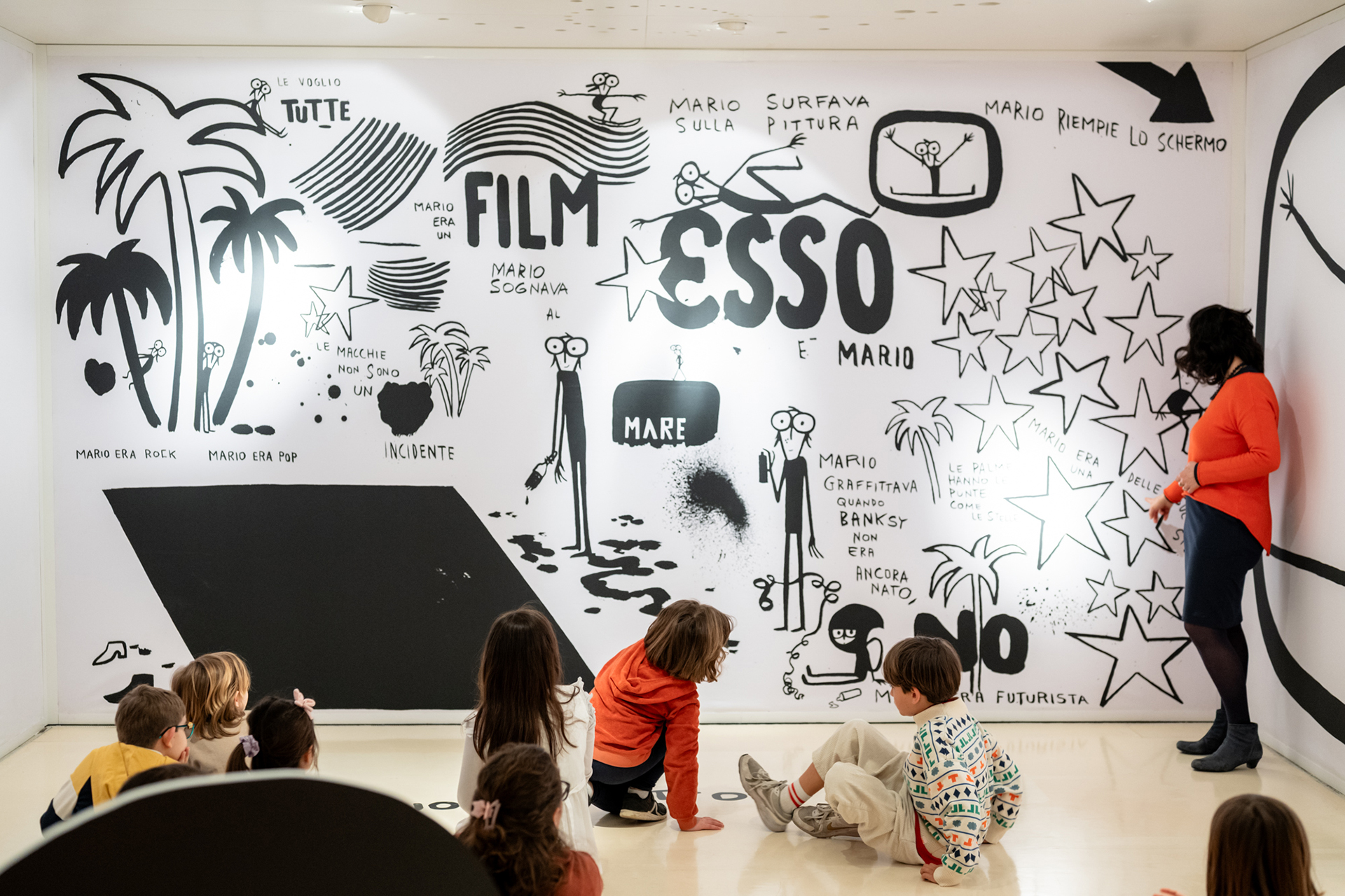 In mostra il racconto di uno dei pittori più eclettici e impetuosi del secondo Novecento. Appassionato di nuove tecnologie e di sperimentazione, è tra i primi a utilizzare schermi, proiettori e computer nel processo artistico, esprimendo un forte senso di creatività e attualità. Durante la visita si svelerà la relazione tra vita, arte e scelta dei materiali di lavoro: dalla carta intelata al perspex, dagli smalti industriali al vinavil, dalle polaroid alle tele emulsionate. In laboratorio ci accoglierà un allestimento site specific, omaggio dell'artista Fausto Gilberti, per scoprire insieme l’opera di Mario Schifano e il suo inconfondibile segno e poi sperimentare tecniche di rielaborazione delle immagini del panorama urbano.