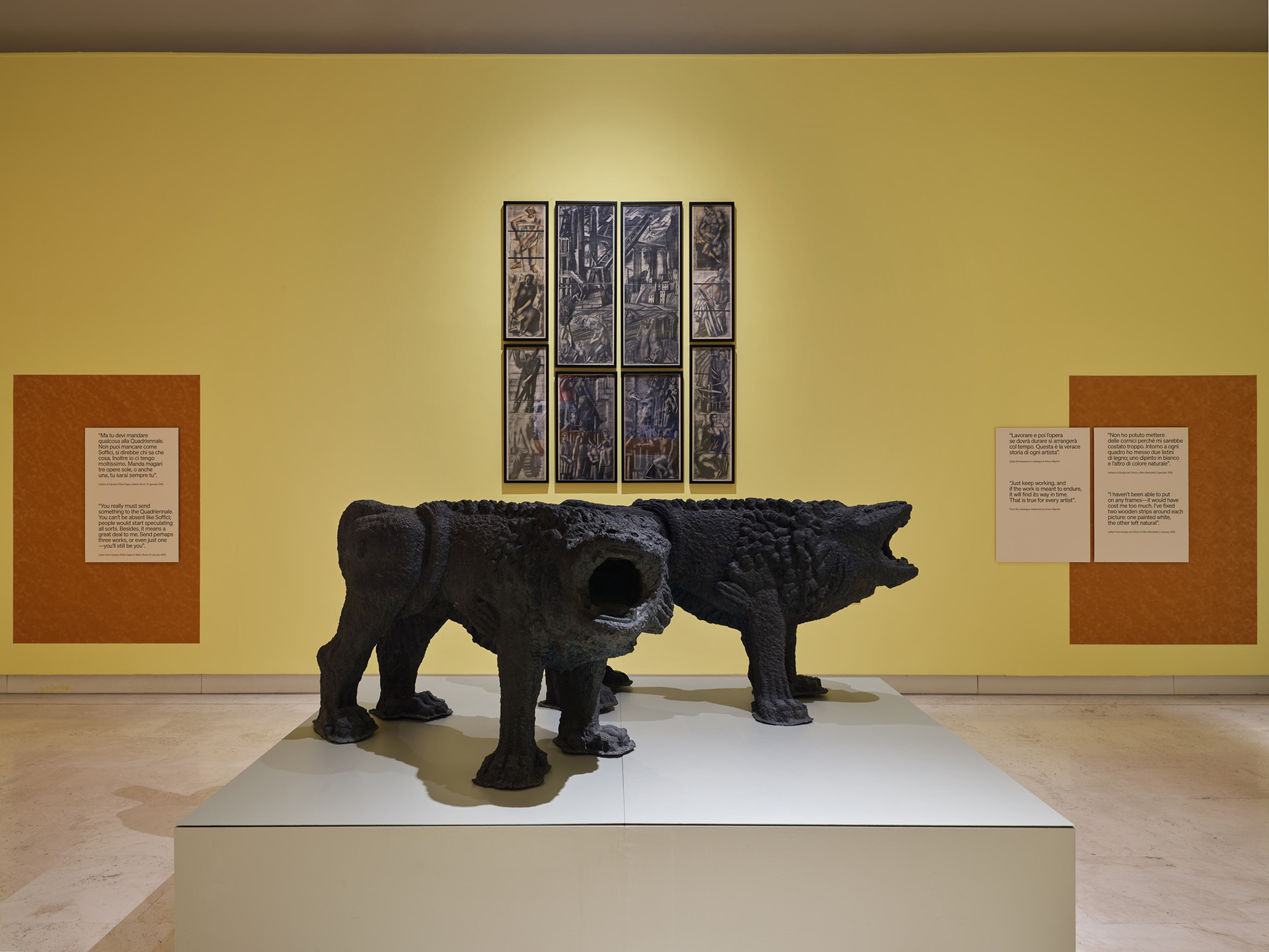 | Veduta dell’allestimento con opere di Mario Sironi e Arturo Martini, courtesy Fondazione La Quadriennale di Roma,