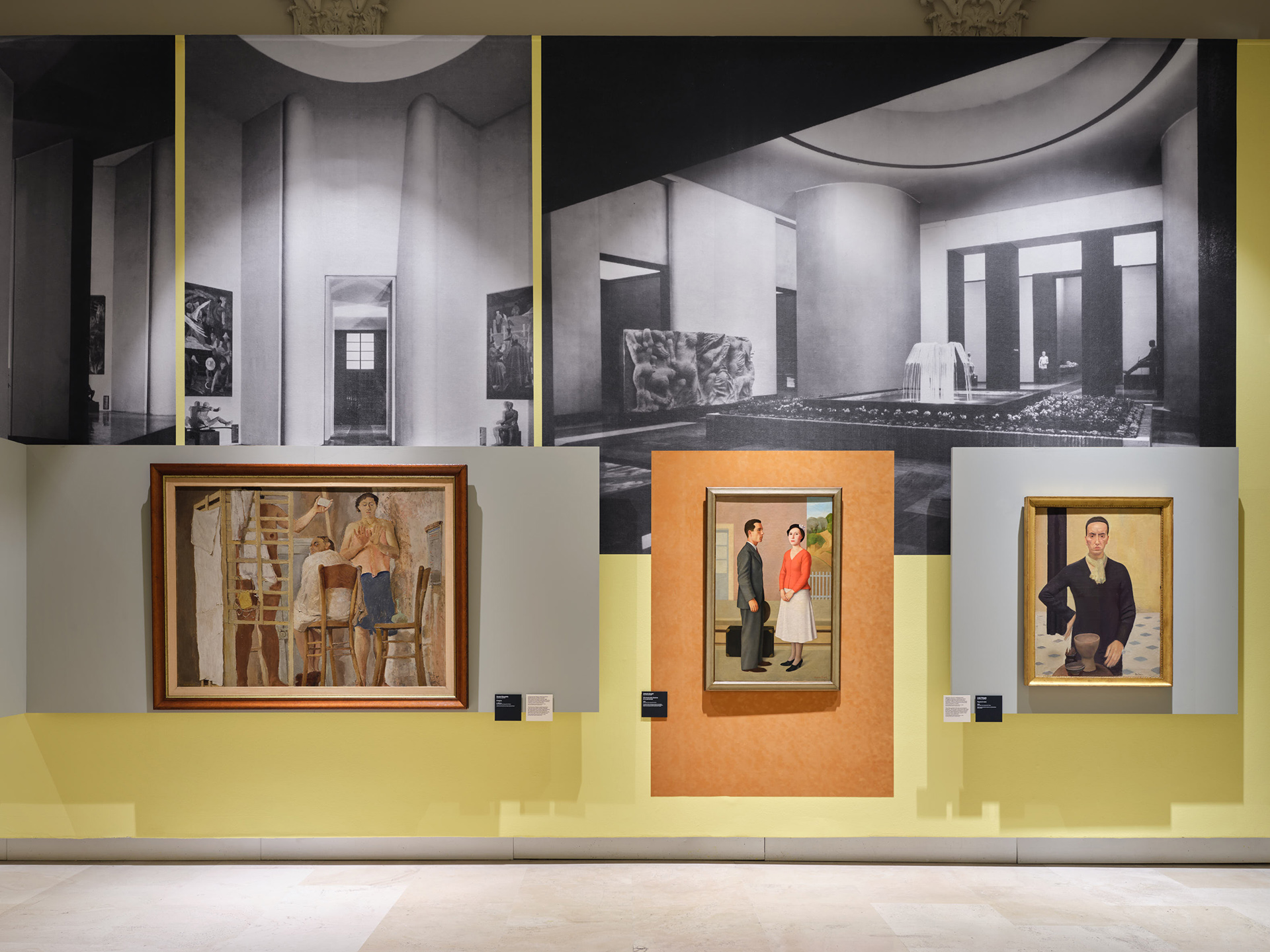 | Veduta dell’allestimento con opere di Fausto Pirandello, Antonio Donghi e Luigi Trifoglio, courtesy Fondazione La Quadriennale di Roma,