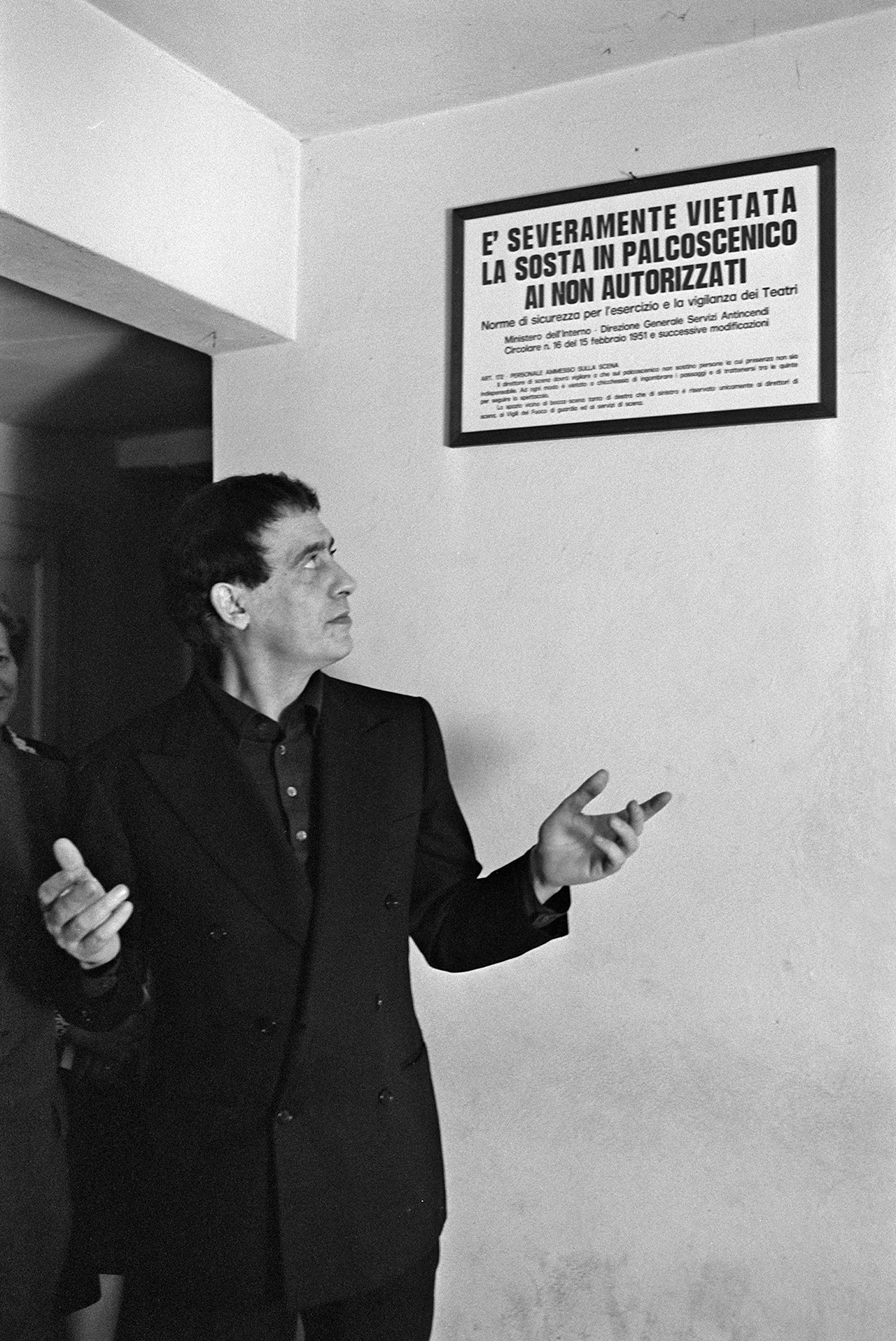 Carmelo Bene, behind the scenes of the Teatro Quirino in Rome, 1981