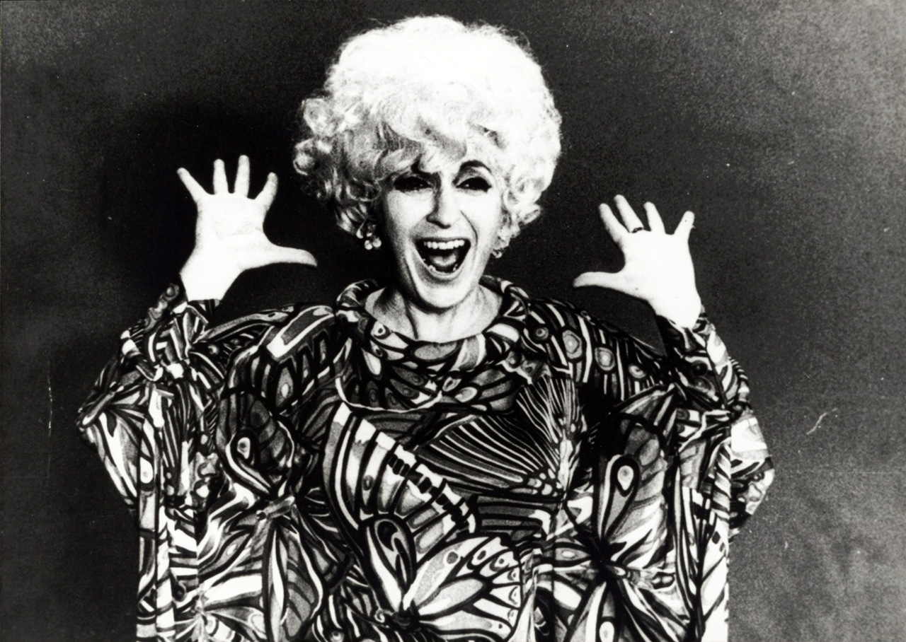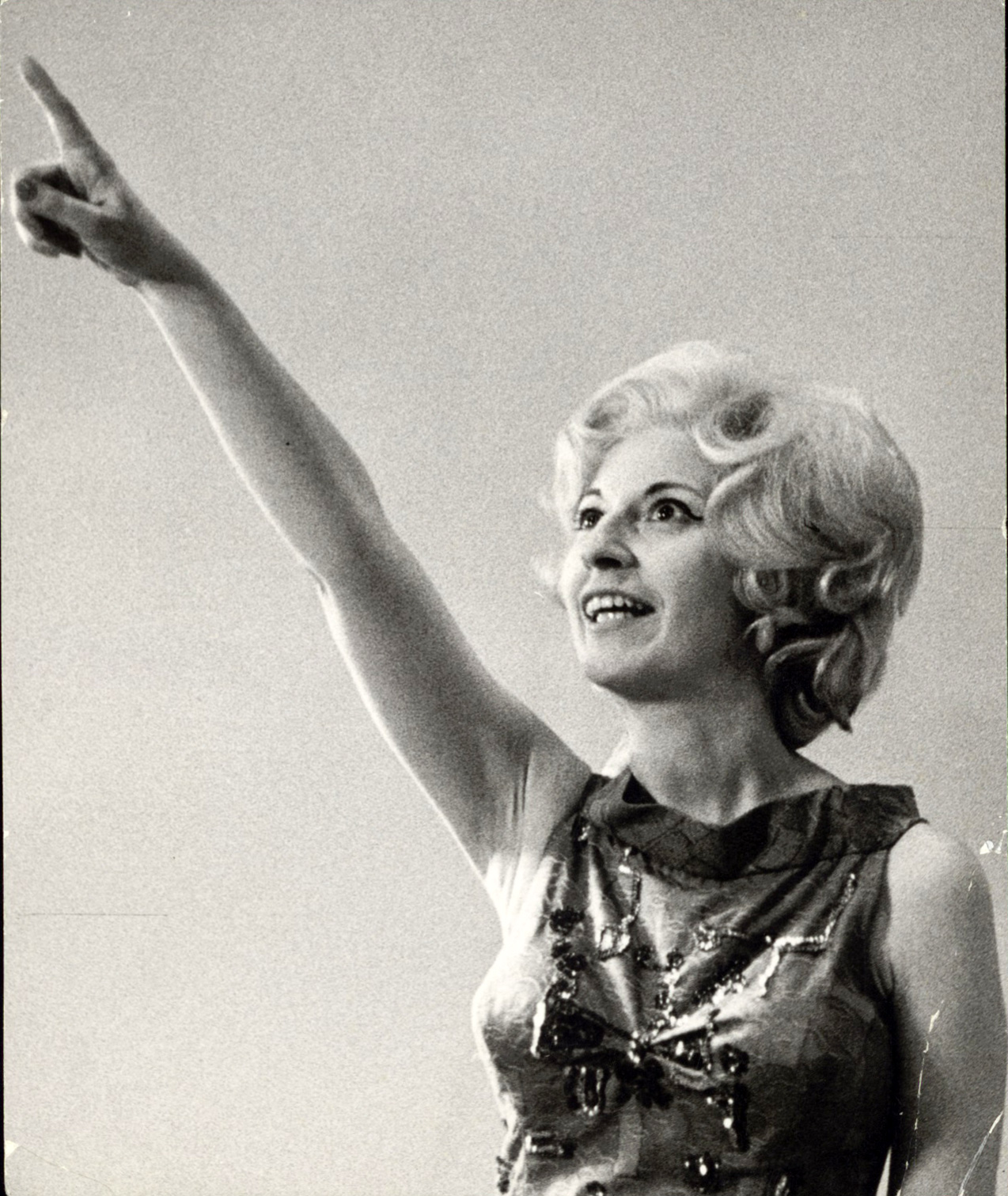 Cathy Berberian poses with Stripsody's stage costume, circa 1966